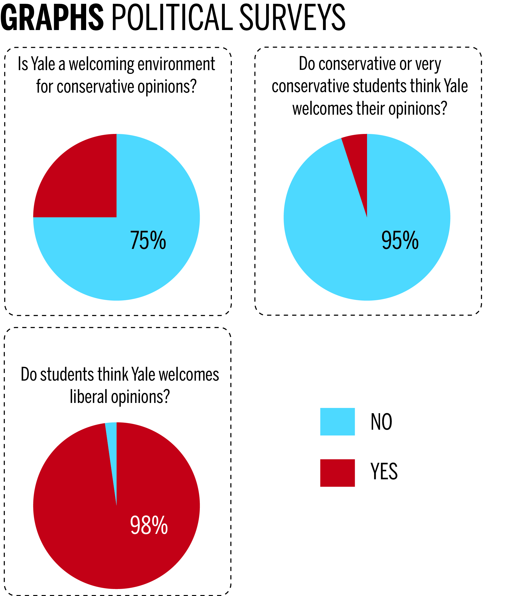 By contrast, more than 98 percent of respondents said Yale is welcoming to students with liberal beliefs. And among students who described themselves as “liberal” or “very liberal,” 85 percent said they are “comfortable” or “very comfortable” sharing their political views in campus discussions.