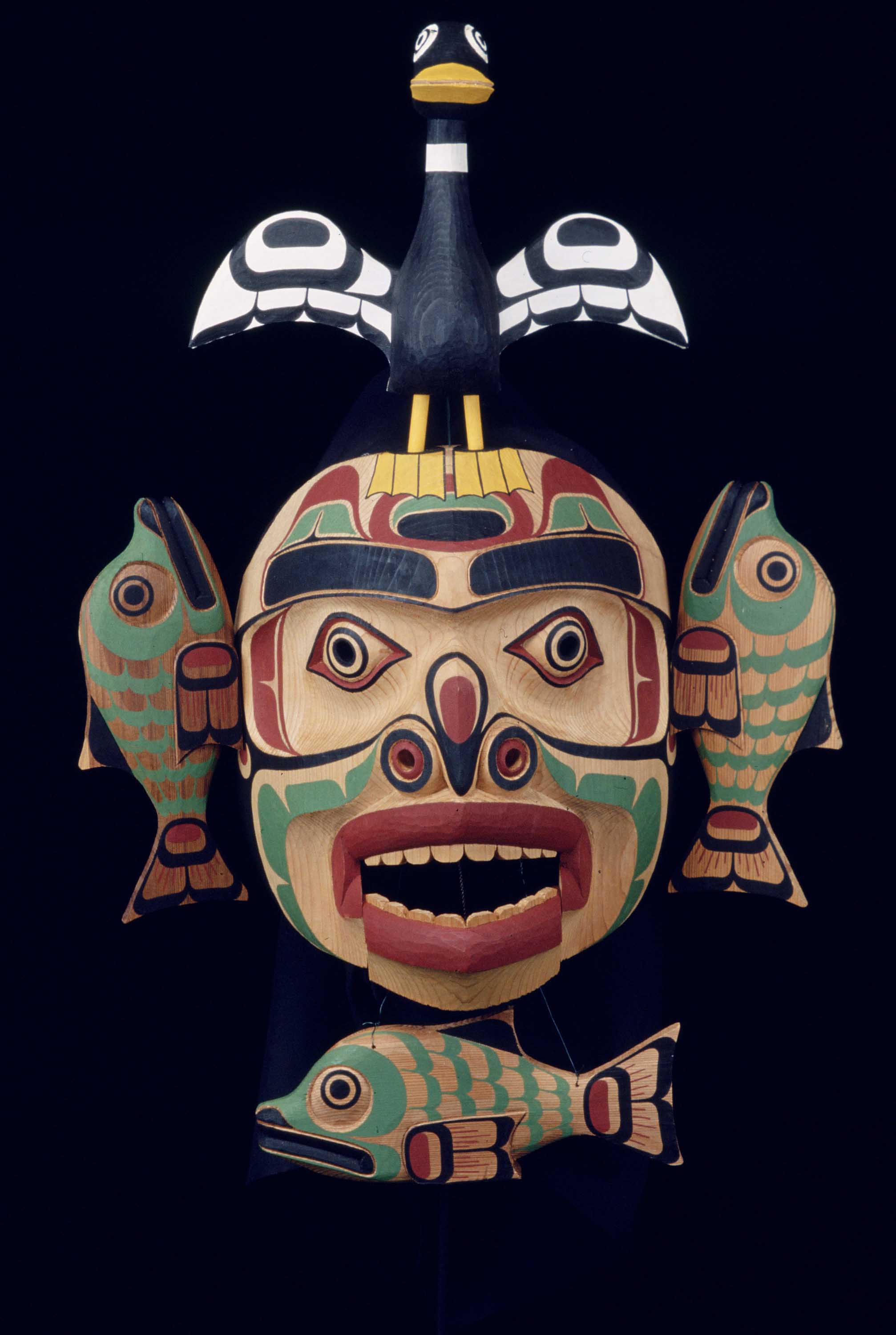 Richard Hunt (Kwakwa̱ka̱’wakw), Sea Monster Mask, 1999. Wood, plastic, textile, and paint. Yale Peabody Museum of Natural History, inv. no. YPM ANT.256928. Photo: Div. of Anthropology, Yale Peabody Museum, 2009