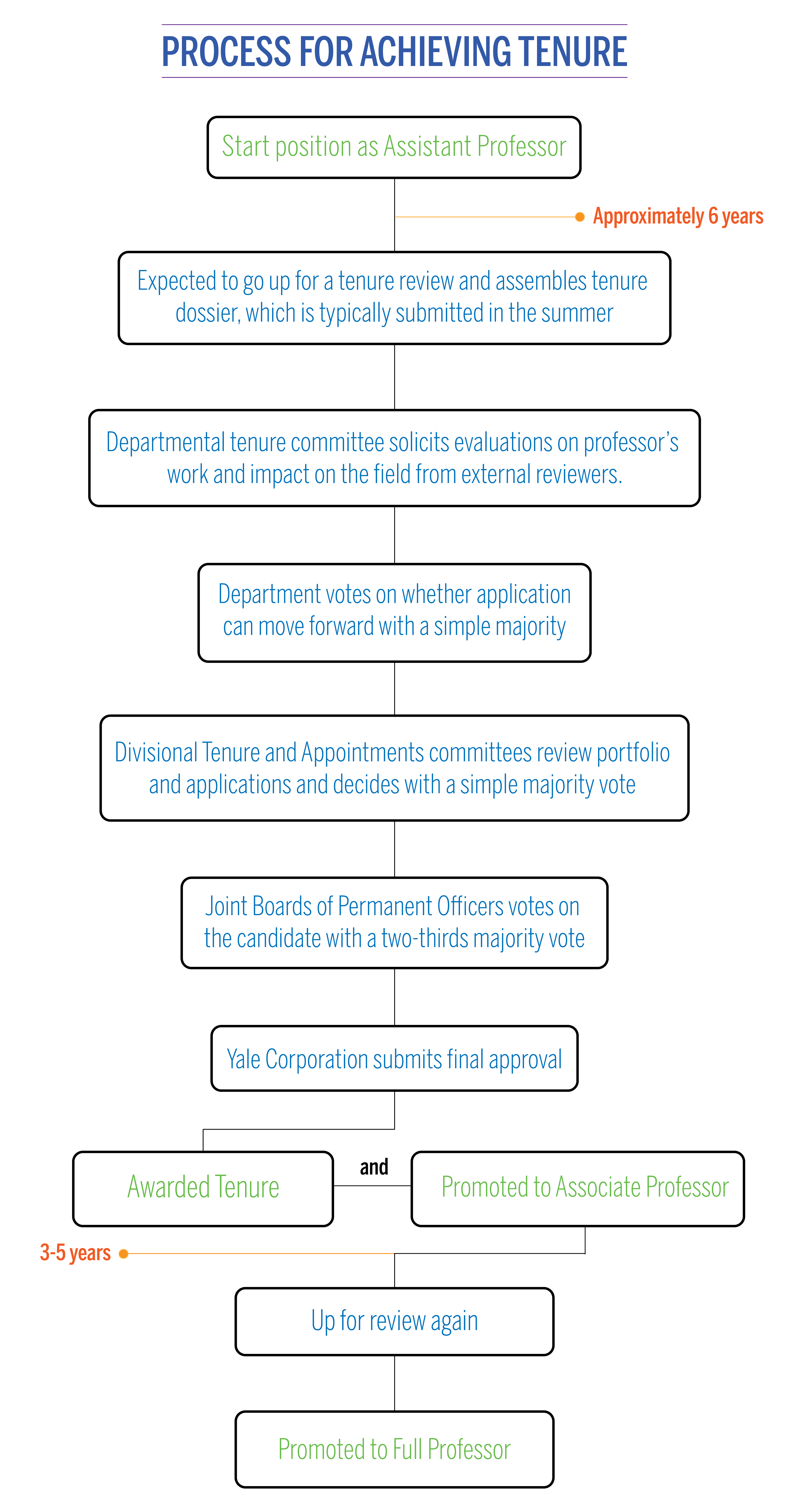 If successfully promoted, professors typically stay at the rank of associate professor with tenure for three to five years, after which they may be considered for promotion to the rank of full professor, according to Gendler.