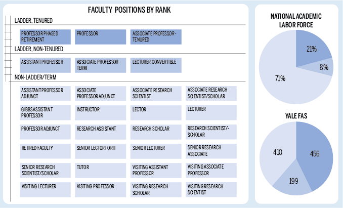 The senate’s report notes that it would be useful to have data to see how Yale’s treatment of its nonladder faculty compares to that of its peer institutions, but its “efforts have been frustrated by the fact that elite private universities guard data on non-tenure-track faculty jealously and any data that is publicly available tends to be poor.”